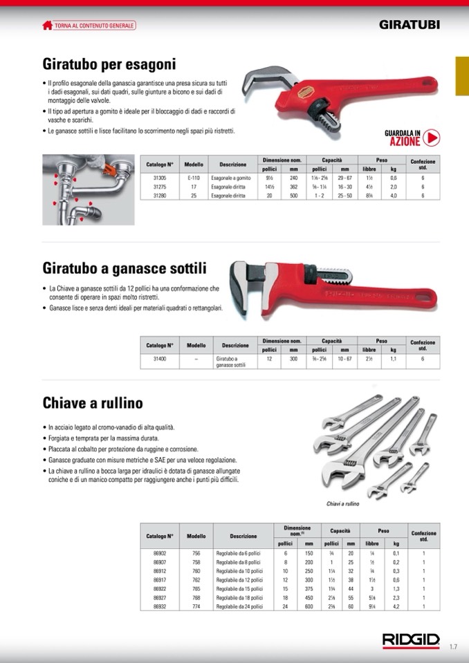 • Il tipo ad apertura a gomito è ideale per il bloccaggio di dadi e raccordi di