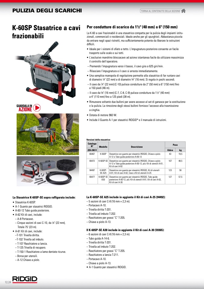 " (22 mm) (C-10) pulisce condutture da 2" (50 mm) a 6" (150 mm) fino