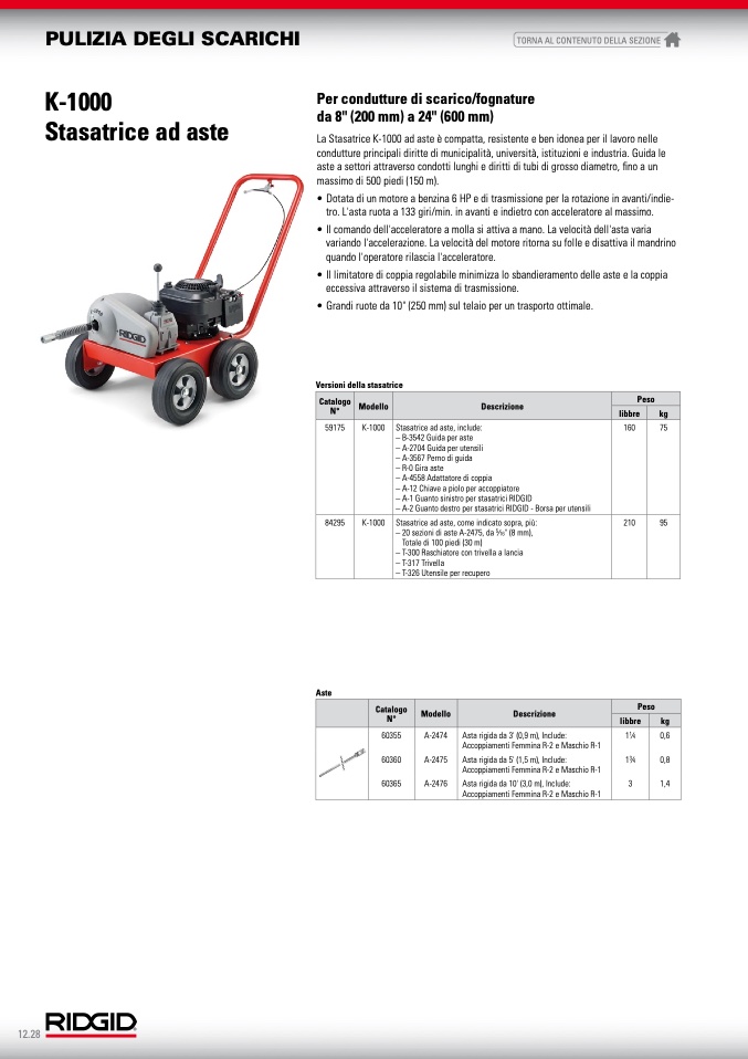 La Stasatrice K-1000 ad aste è compatta, resistente e ben idonea per il lavoro nelle