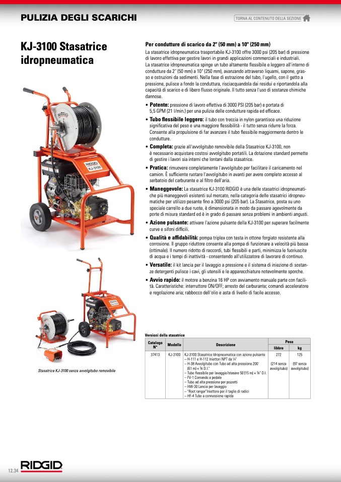 condutture da 2" (50 mm) a 10" (250 mm), avanzando attraverso liquami, sapone, gras-