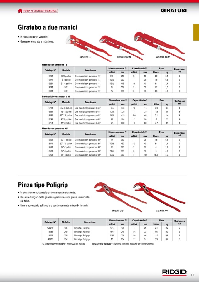 (1) Dimensione nominale = lunghezza del manico.