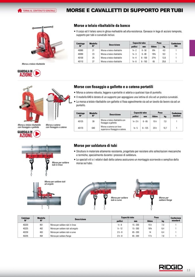 Morsa per saldare tubi in linea