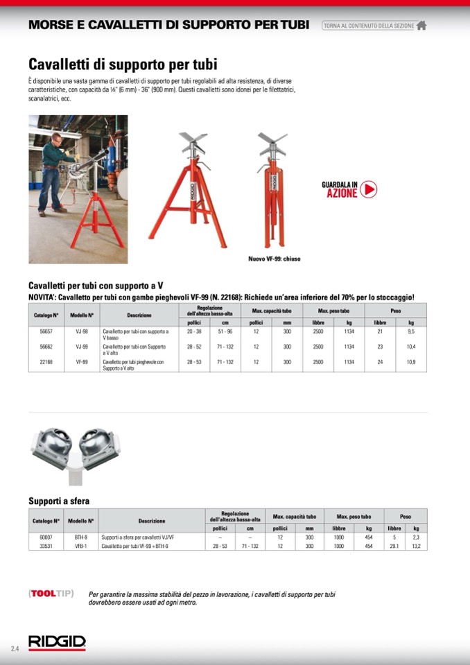 " (6 mm) - 36" (900 mm). Questi cavalletti sono idonei per le filettatrici,