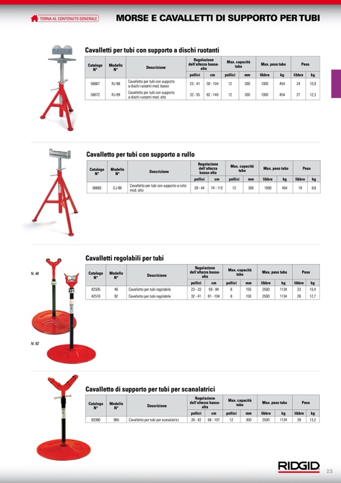 Cavalletto per tubi per scanalatrici