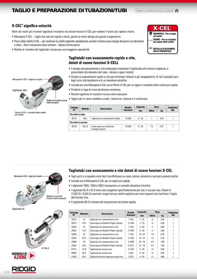 • Manopola X-CEL – taglio dei tubi più rapido e facile, grazie ai nostri design più grandi e ergonomici.