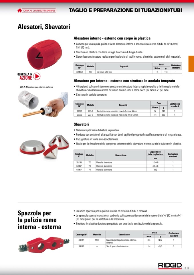 • Garantisce un'alesatura rapida e professionale di tubi in rame, alluminio, ottone e di altri materiali.