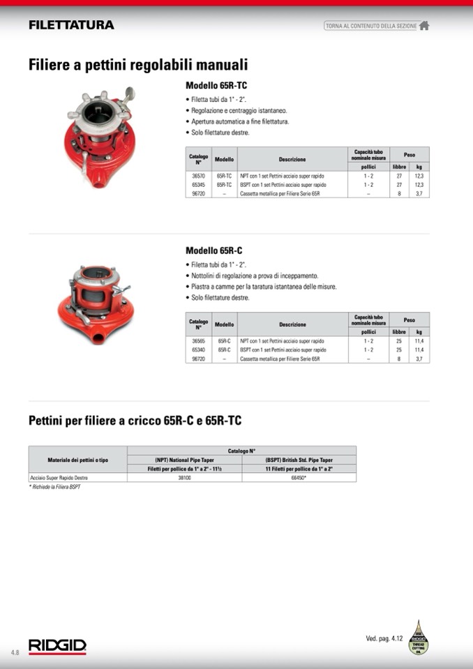 65R-TC NPT con 1 set Pettini acciaio super rapido