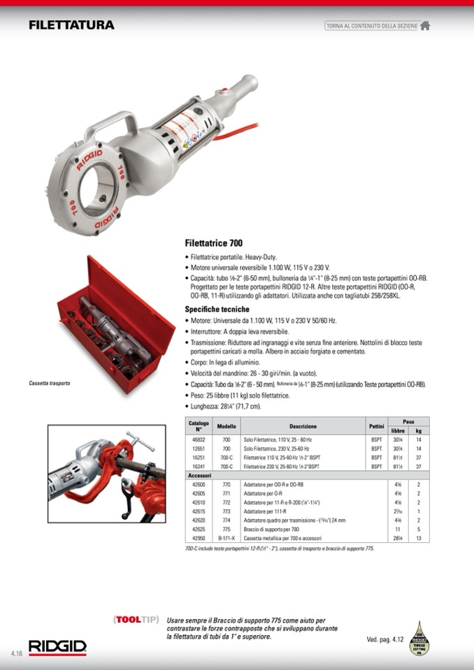 • Peso: 25 libbre (11 kg) solo filettatrice.