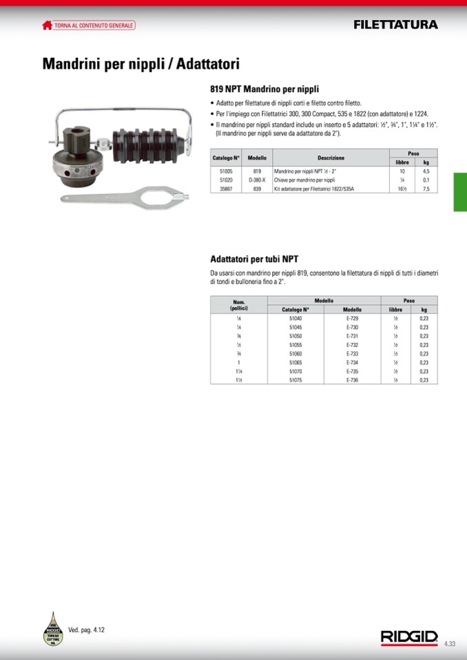 Da usarsi con mandrino per nippli 819, consentono la filettatura di nippli di tutti i diametri