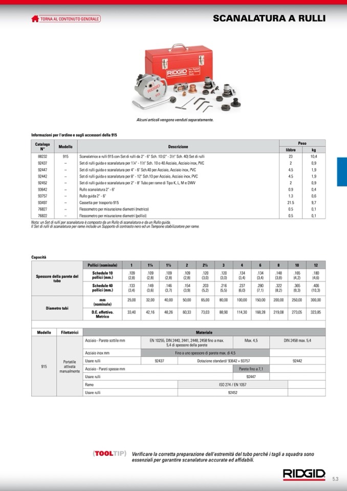 Scanalatrice a rulli 915 con Set di rulli da 2" - 6" Sch. 10 (2" - 3
