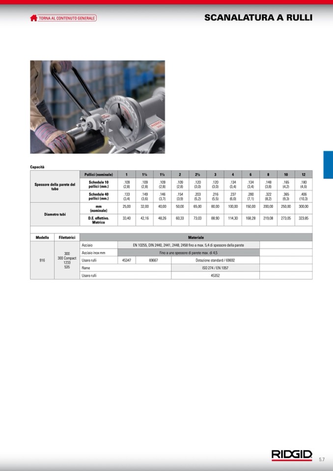 EN 10255, DIN 2440, 2441, 2448, 2458 fino a max. 5,4 di spessore della parete