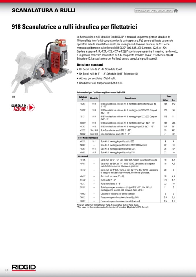 è in grado di realizzare scanalature su tubi con parete standard fino a 12" Schedule 10 e 8"