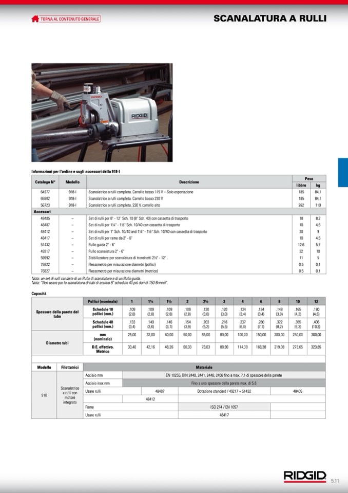 Nota: "Non usare per la scanalatura di tubi di acciaio 8" schedule 40 più duri di 150 Brinnel".