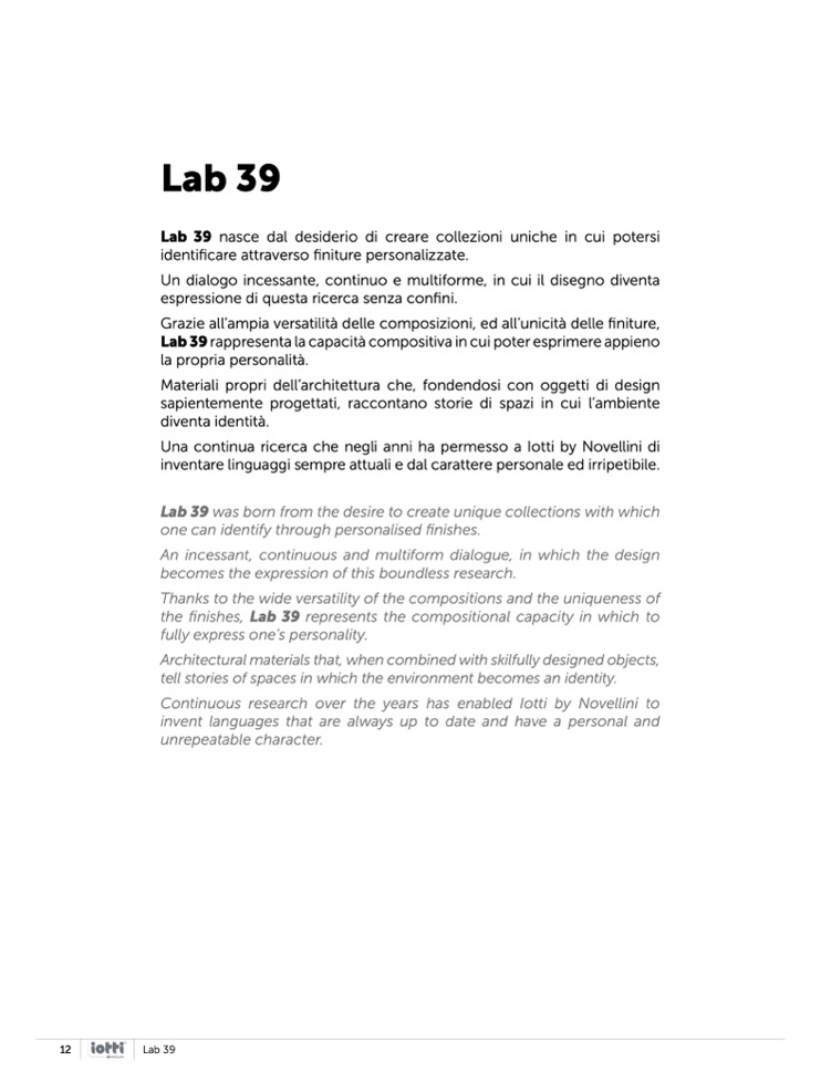 Lab 39 nasce dal desiderio di creare collezioni uniche in cui potersi