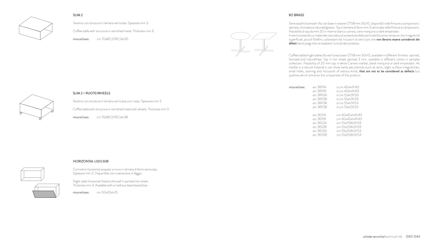 Coee tables/night tables Xo with brass base OT58 mm 30x10, available in dierent finishes: satined,