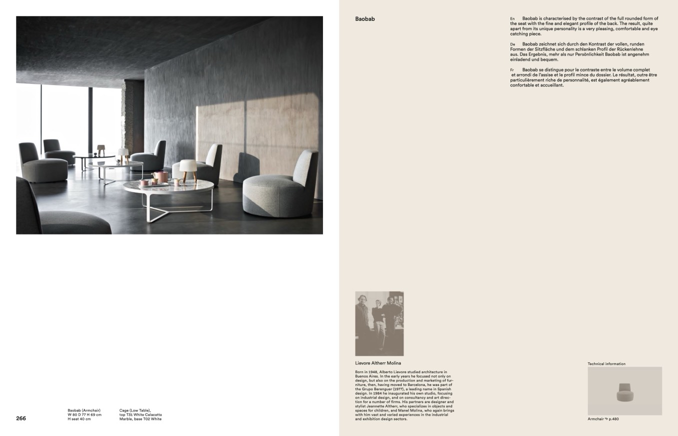 et arrondi de l’assise et le profil mince du dossier. Le résultat, outre être