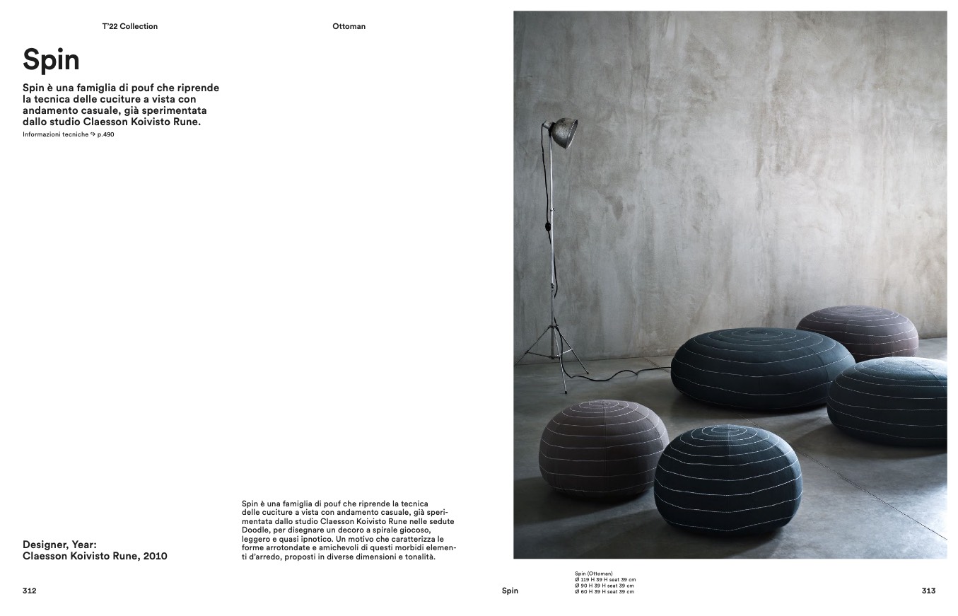 Spin è una famiglia di pouf che riprende la tecnica