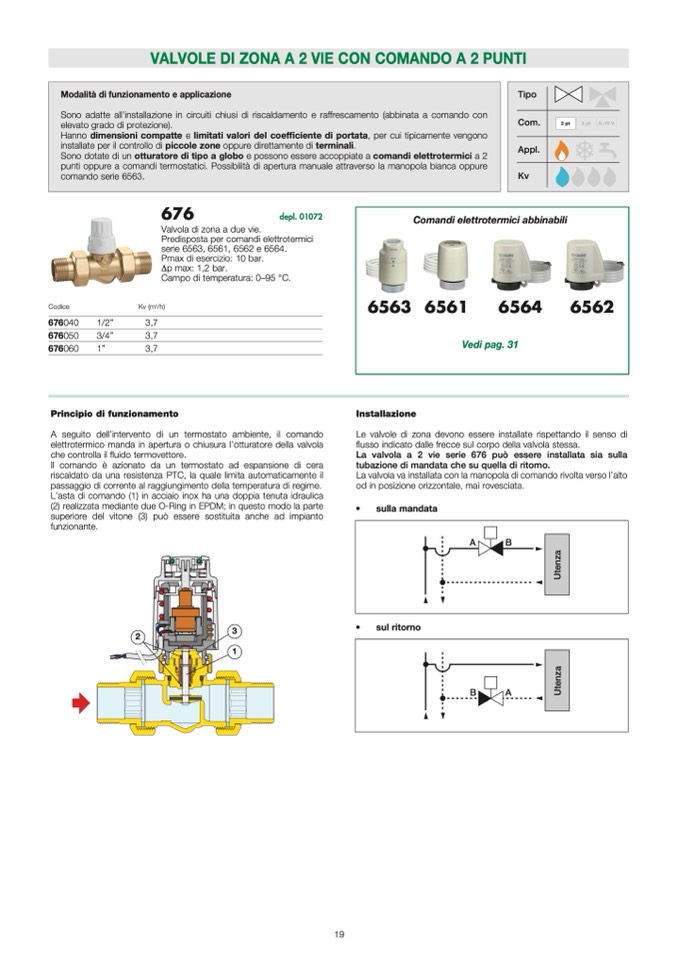 Sono dotate di un otturatore di tipo a globo e possono essere accoppiate a comandi elettrotermici a 2