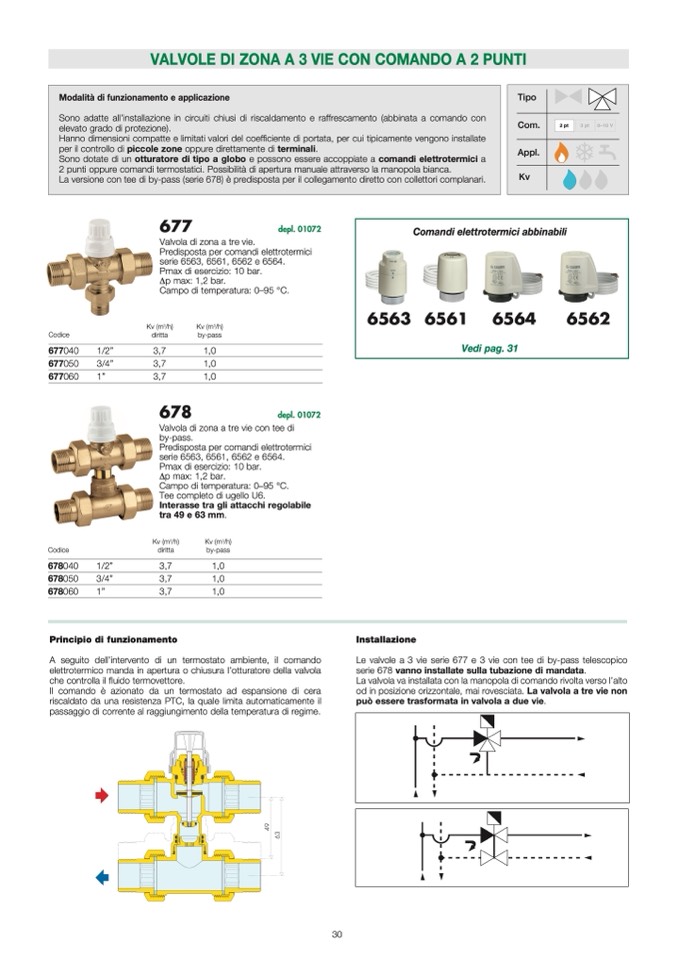 Le valvole a 3 vie serie 677 e 3 vie con tee di by-pass telescopico