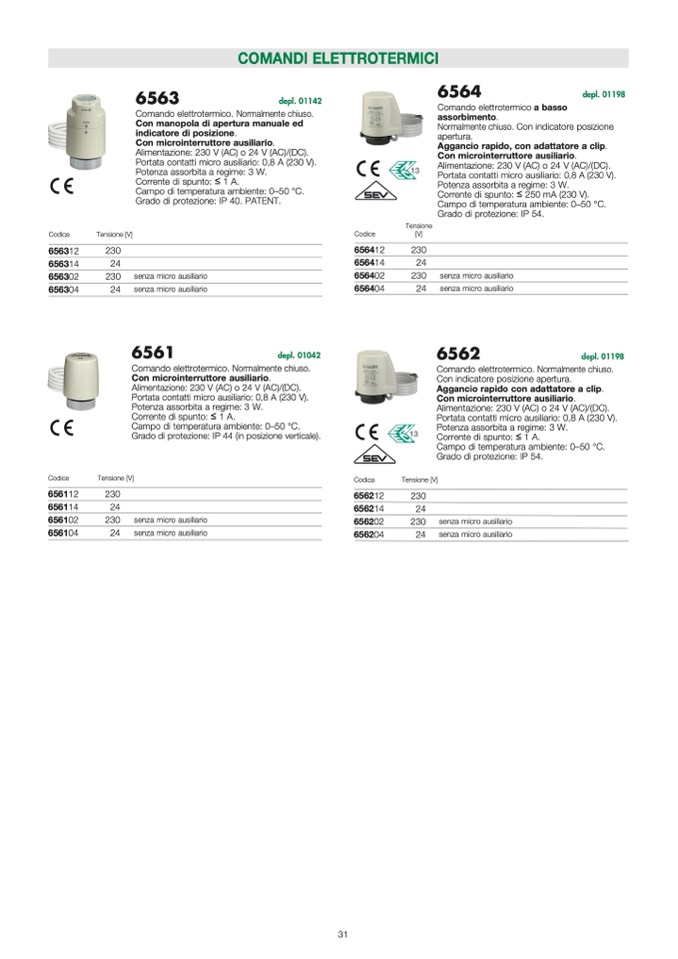 Portata contatti micro ausiliario: 0,8 A (230 V).