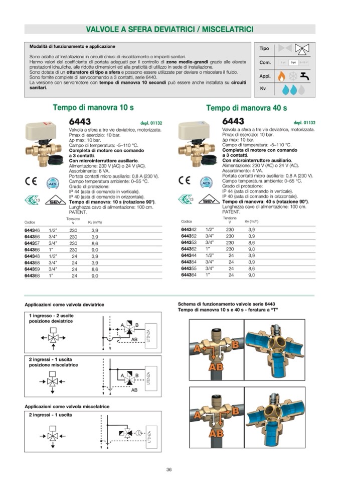 Schema di funzionamento valvole serie 6443