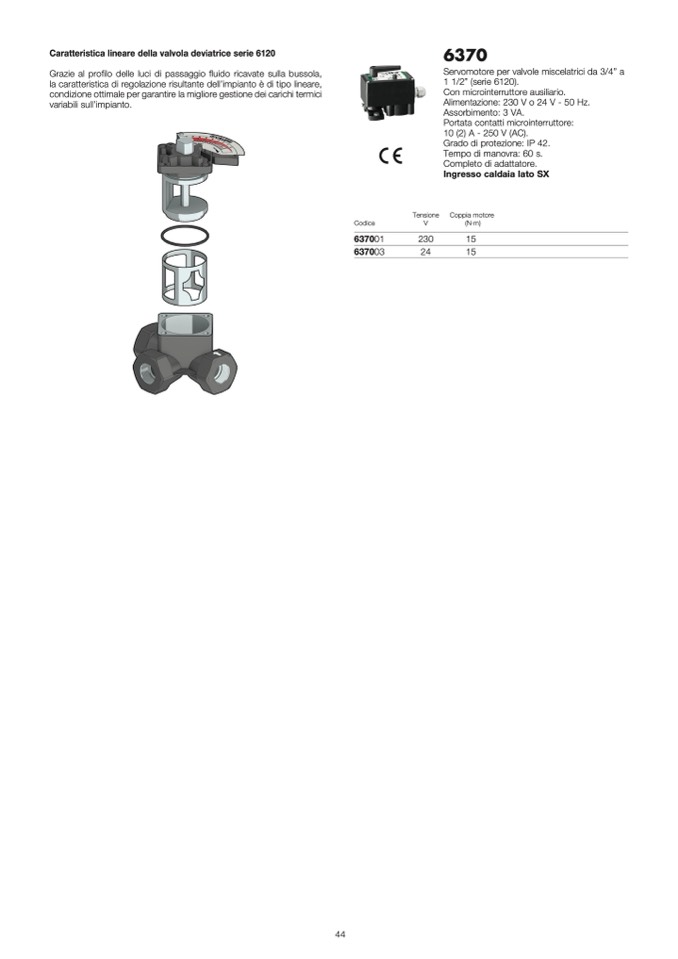 Caratteristica lineare della valvola deviatrice serie 6120