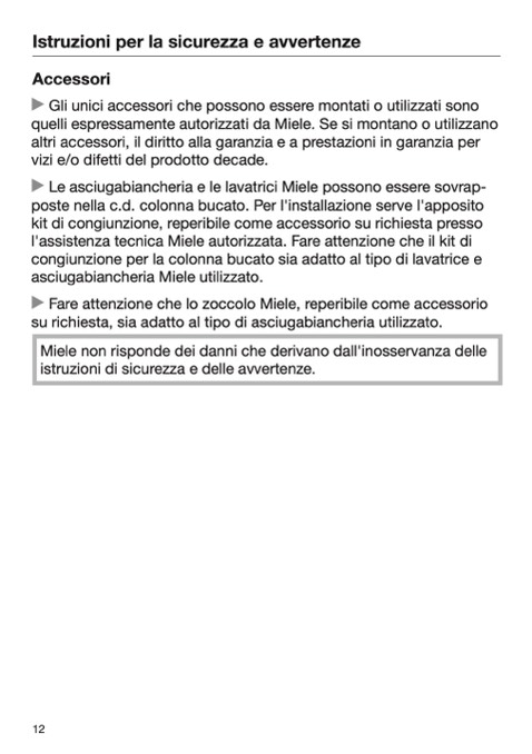 quelli espressamente autorizzati da Miele. Se si montano o utilizzano