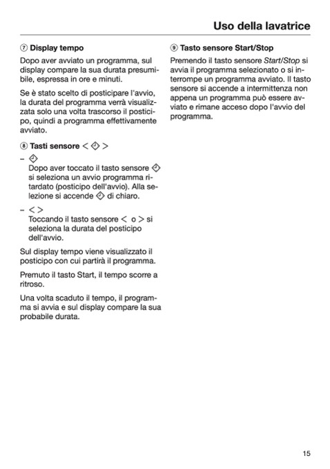 Tasto sensore Start/Stop
