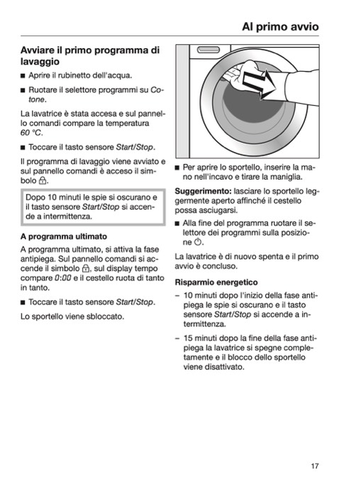 germente aperto affinché il cestello