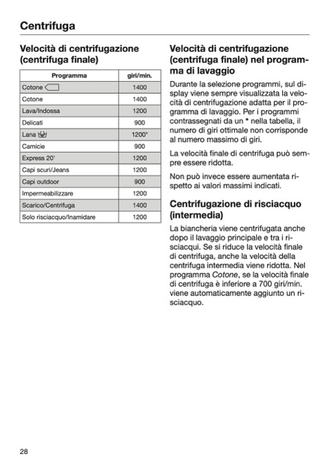 La velocità finale di centrifuga può sem-