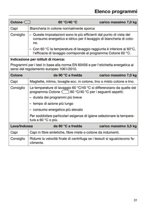 l'efficacia di lavaggio corrisponde al programma Cotone 60 °C.