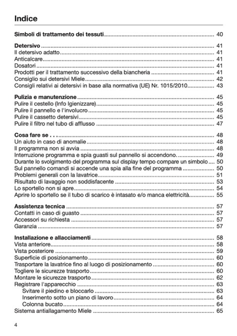 Consiglio sui detersivi Miele.................................................................................. 42