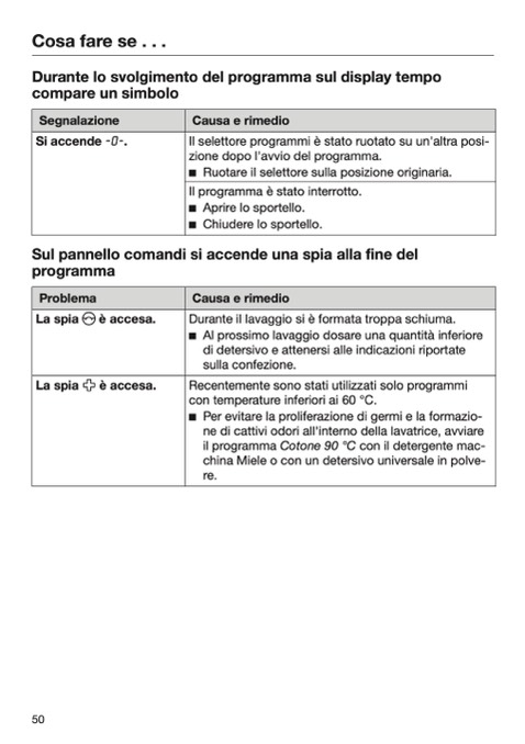 ne di cattivi odori all'interno della lavatrice, avviare