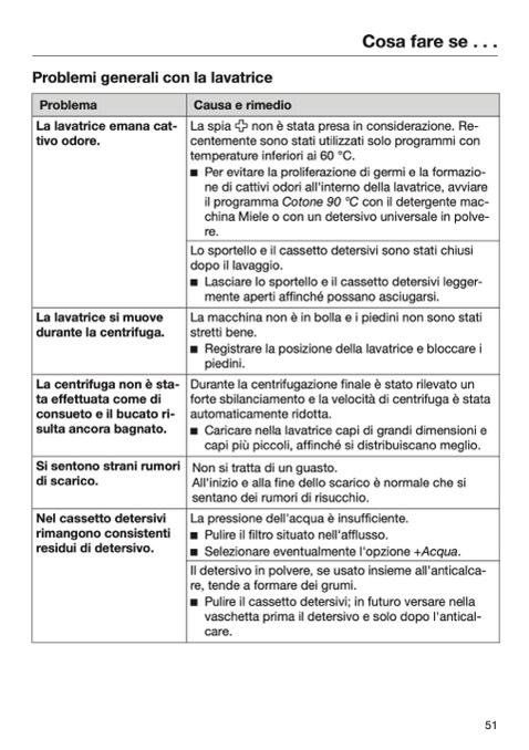 ne di cattivi odori all'interno della lavatrice, avviare