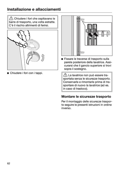sportare di nuovo la lavatrice (ad es.