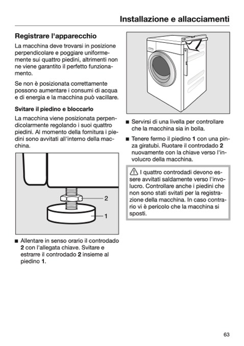 piedini. Al momento della fornitura i pie-