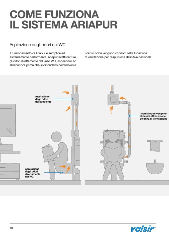 gli odori direttamente dal vaso WC, aspirandoli ed
