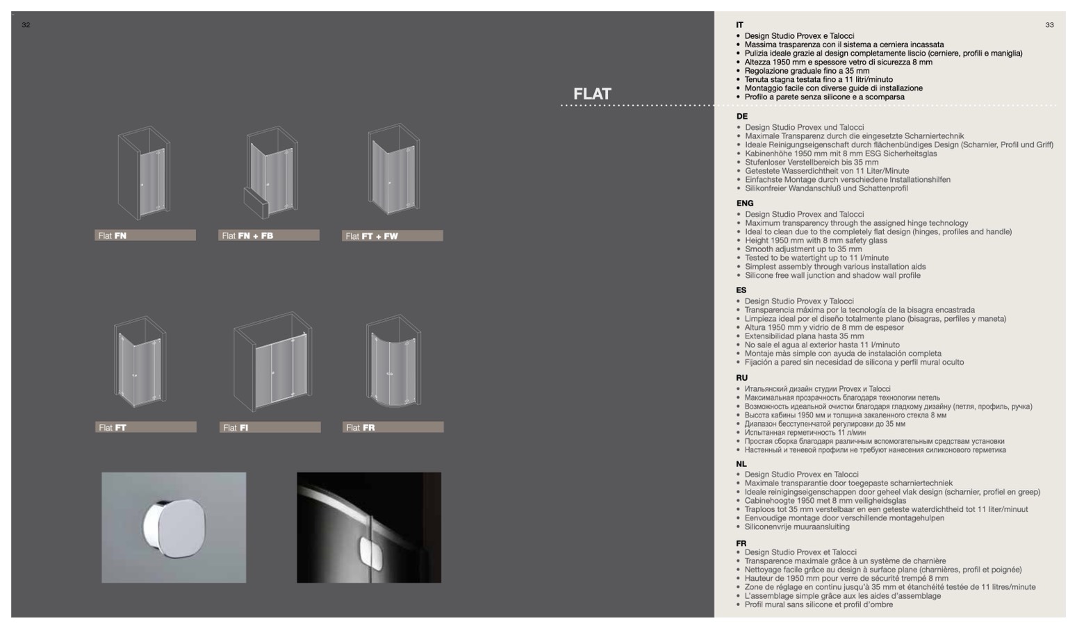 • Limpieza ideal por el diseño totalmente plano (bisagras, perfiles y maneta)