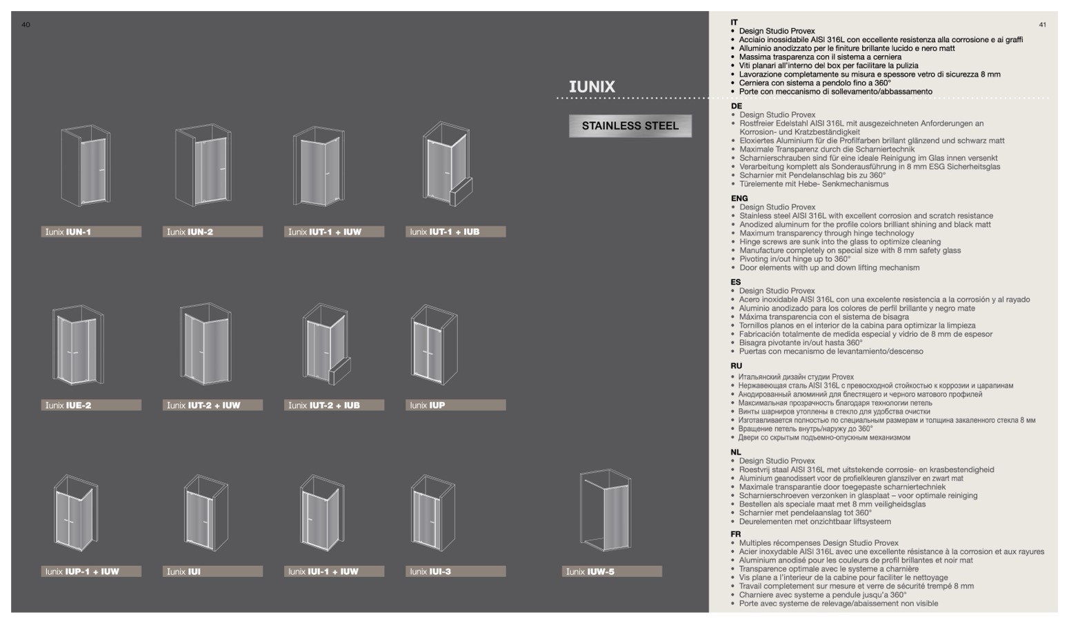 • Viti planari all’interno del box per facilitare la pulizia
