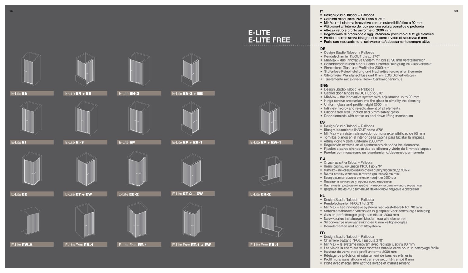 • Silicone free wall junction and 6 mm safety glass