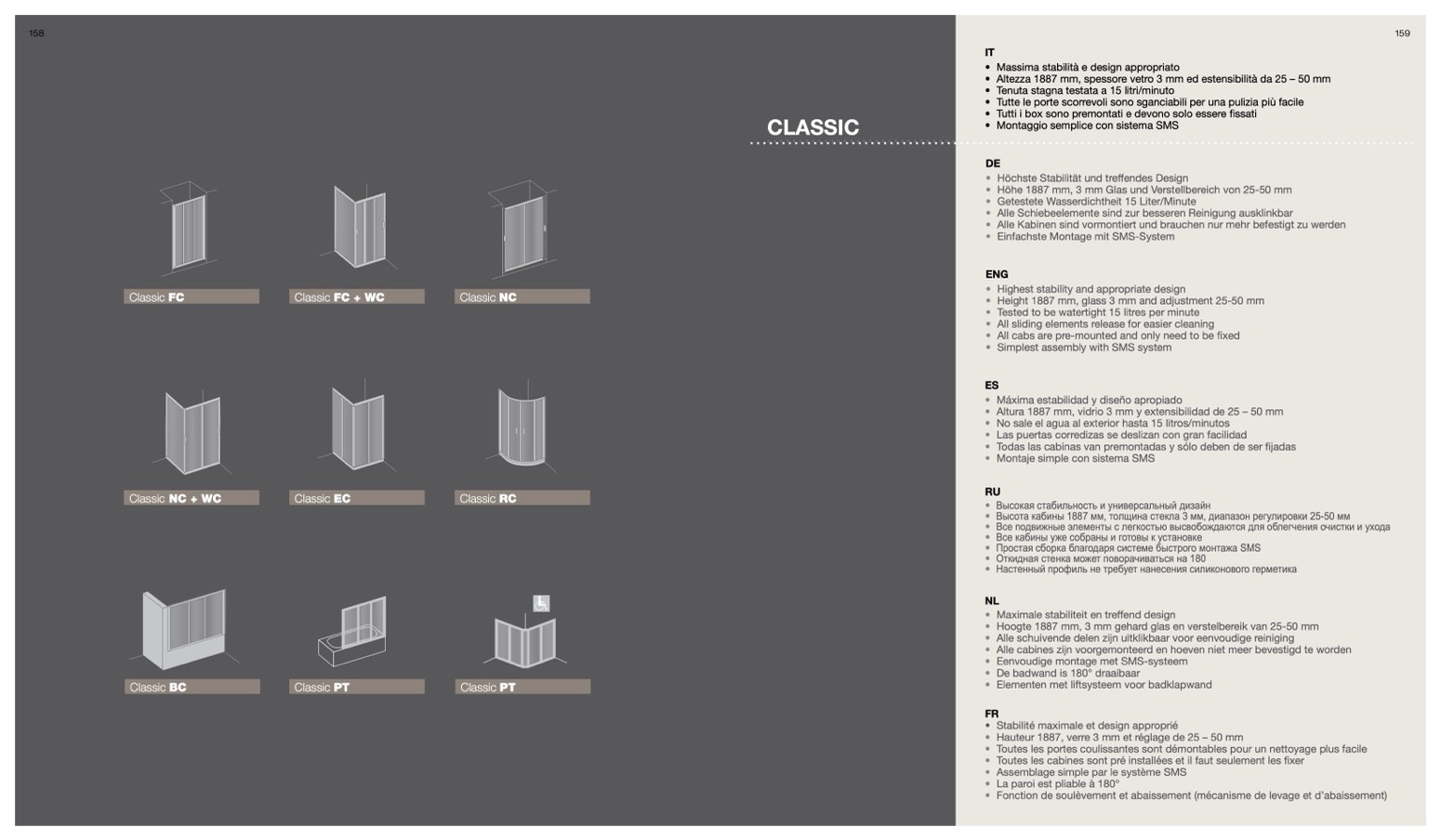 • Altezza 1887 mm, spessore vetro 3 mm ed estensibilità da 25 – 50 mm