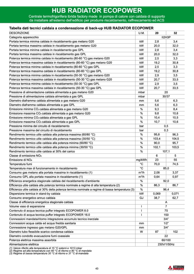 (1) Valore riferito alla temperatura di 15 °C esterni e 1013 mbar