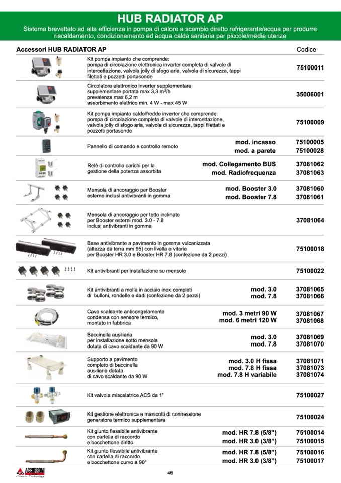 Kit pompa impianto caldo/freddo inverter che comprende:
