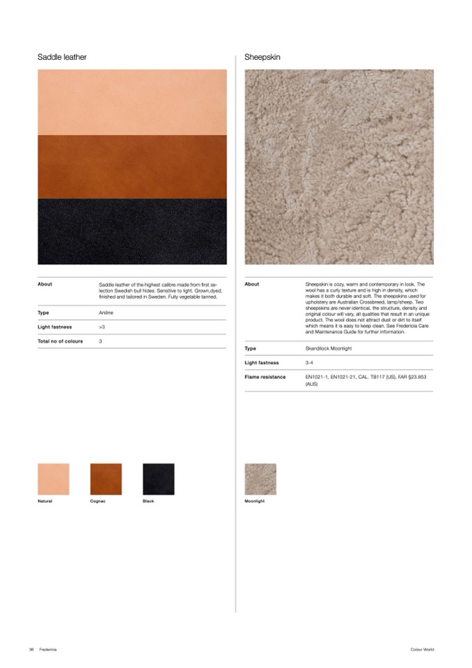 lection Swedish bull hides. Sensitive to light. Grown,dyed,