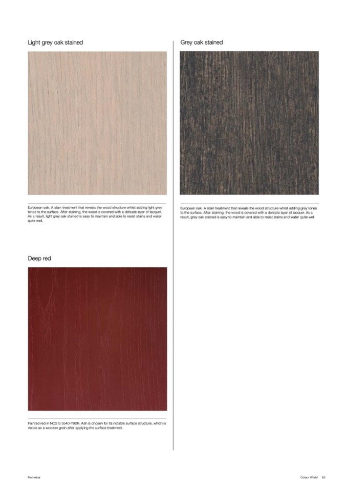 tones to the surface. After staining, the wood is covered with a delicate layer of lacquer.