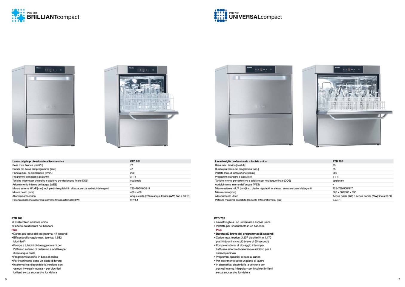 piatti/h (con il ciclo più breve di 55 secondi)