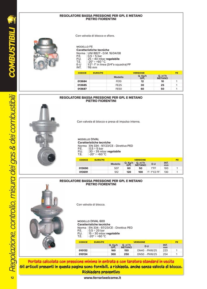 REGOLATORE BASSA PRESSIONE PER GPL E METANO