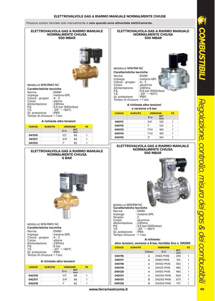 ELETTROVALVOLE GAS A RIARMO MANUALE NORMALMENTE CHIUSE
