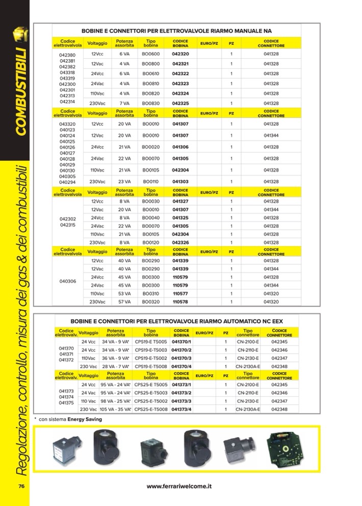BOBINE E CONNETTORI PER ELETTROVALVOLE RIARMO AUTOMATICO NC EEX