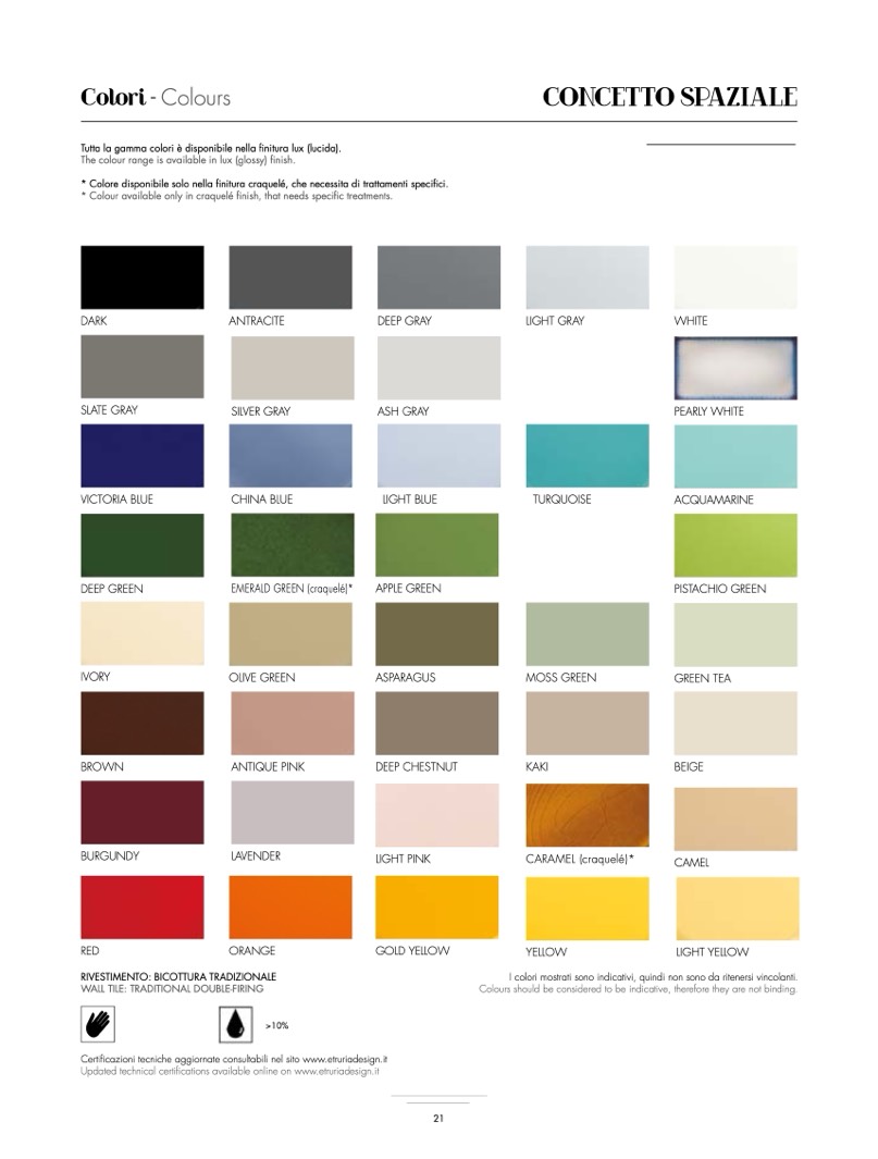 * Colore disponibile solo nella finitura craquelé, che necessita di trattamenti specifici.